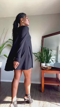 The long sleeve black Janet Tent Dress is fun, classic and flirty. The scoop neckline beautifully frames the face while the dress swings freely around the body for an ultra comfortable fit. Key design features are the black and gold metal novelty buttons down the back and two discreet pockets for the small things.